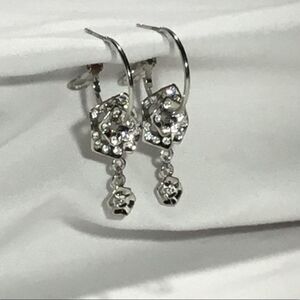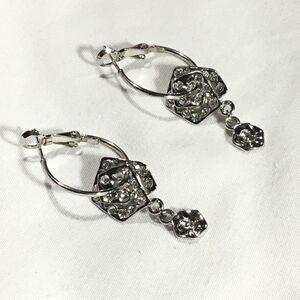 Sparkling crystals line rose type flowers that dangle from small hoops