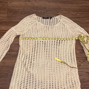 Stay cozy and stylish with this cream knit sweater. Perfect for layering and adding a touch of elegance to any outfit. See through