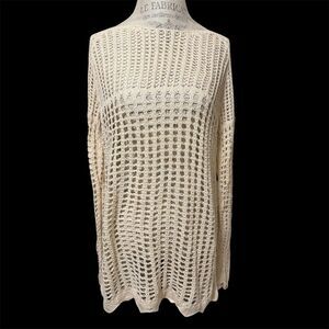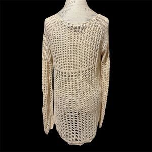 Crystal Kobe Boho Crochet Tunic Sweater Cream Minimalist Asymmetrical Hem Large