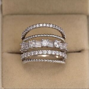Crystal Multiband Stacked Silver CZ Stone Ring Pave Geometric Twine Multilayered