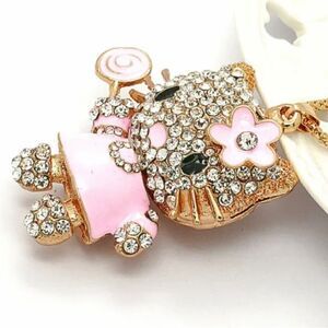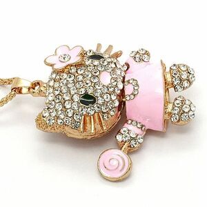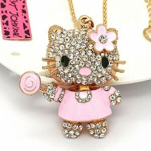 Crystal Pink Enamel Lollipop Flower Cat Kitten Necklace NWOT