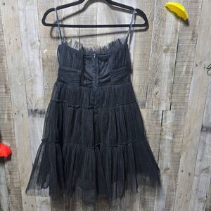 Crystal Sky Black Tiered Tulle Cocktail Mini Dress