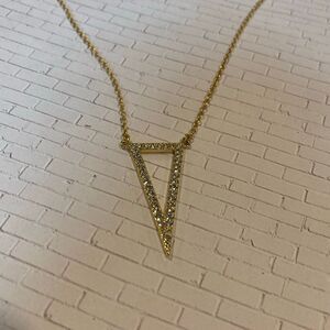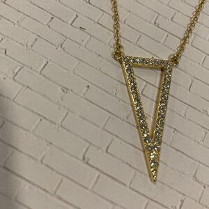 Details: Gold plated necklace with clear crystal triangle. Lobster closure.