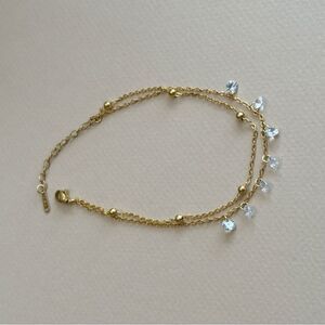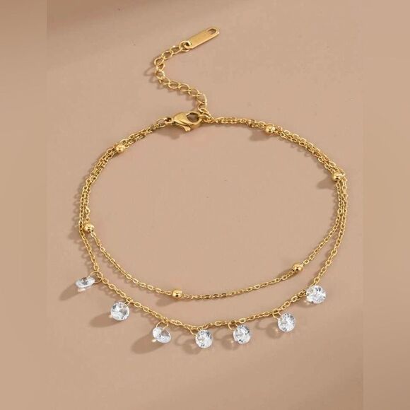 This stunning gold chain anklet features sparkling crystal accents, perfect for adding a touch of elegance to any outfit. Ideal for both casual and formal occasions.