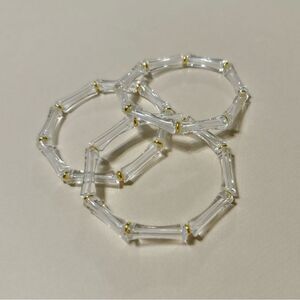 3 pc Clear crystal resin boho bracelet in gold tone hardware