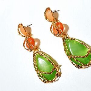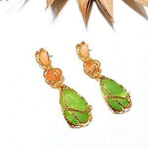 Multicolor geo crystal drop stud earrings in gold tone hardware