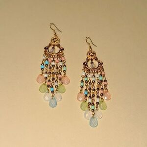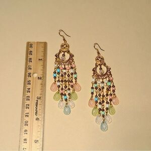 Multicolor crystal resin drop dangle drop earrings in gold tone hardware
