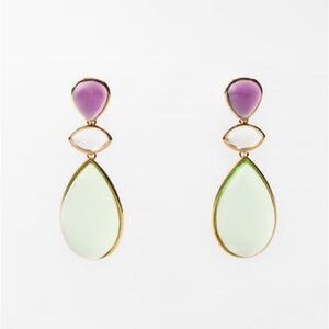 Multicolor crystal drop earrings in gold tone hardware