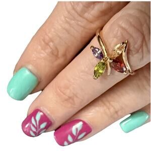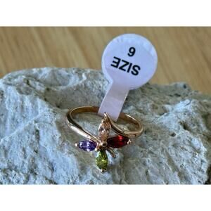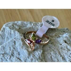 Crystals By Swarovski 14k Gold Overlay 4 Stone Marquise Multicolor Ring NEW