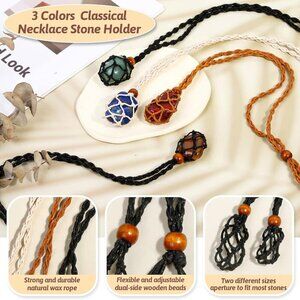 Features: Includes 7 polished natural healing stones in different colors and shapes, along with 6 handmade retro crystal cage necklaces in 3 colors and two sizes. The necklaces have adjustable wax rope cords with wooden beads, so you can get the perfect fit. Great for meditation, yoga, healing, or just adding a mystical touch to your look.