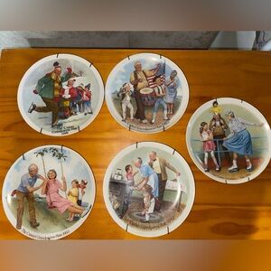 Set of five decorative collector plates featuring colorful illustrations. Perfect for display or collection.