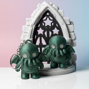 Add a little sparkle and mystery to your outfit with this Cthulhu purse charm and desk buddy. This flexi cryptid cutie is sure to provide hours of fidgety fun to the neurodivergent lover of mystery in your life and makes the perfect gift or to add some spooky vibes to your favorite backpack or bag this Halloween.