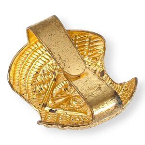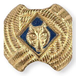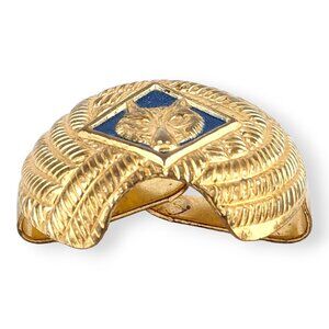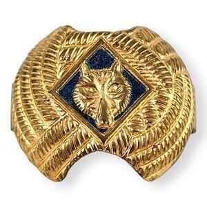 Cub Scout Neckerchief Slide Boy Scouts Tie Clip Blue Gold Toned Wolf Vintage BSA