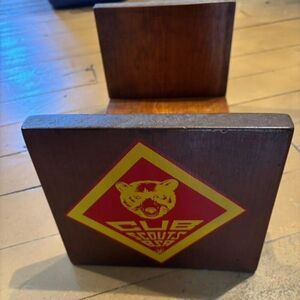 Cub Scouts BSA Vintage Home Made Wood Book End Case
