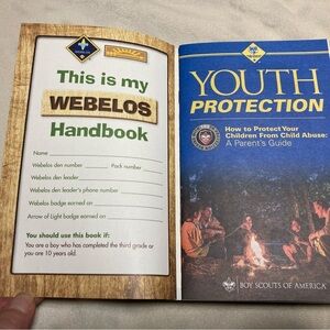 Cub scouts Webelos Handbook. There are some surface scratches to the front and mostly back cover and a crease on the front cover bottom corner otherwise this is in very good condition. The inner pages are in excellent condition. Please message me prior to purchase with any questions. Thank you!