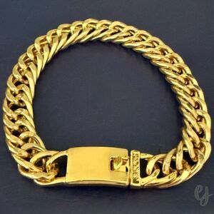 Cuban Chain Bracelet with Lock Clasp – Polished Gold Tone Finish