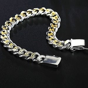 Cuban Chain Link Sterling Silver Gold Two Tone Silver Unisex Bracelet