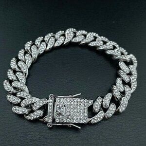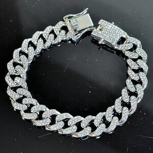 Cuban Link Miami Bling Silver Quality Mens Mans Bracelet Chain XL Wrists