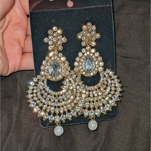 beautiful all over a cubic zirconia unique earrings with pearls.