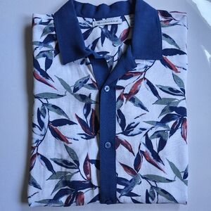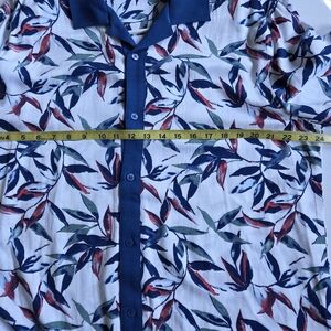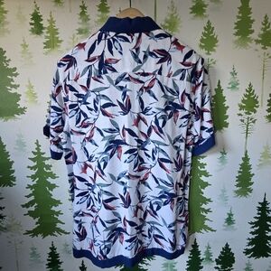 Stylish short sleeve button-up shirt with a vibrant floral pattern. Features a mix of blue, red, and white colors. A Cuban collar adds some cool retro charm while the textured viscose fabric drapes softly for lasting comfort.