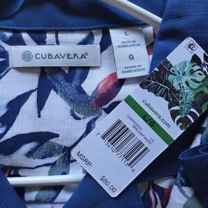Cubavera Button-Front Watercolor Leaf Print Camp Shirt