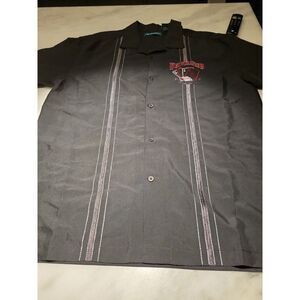 Cubavera Embroidered Poker Club Button Up Panel Shirt - Jet Black - Men's Size M.