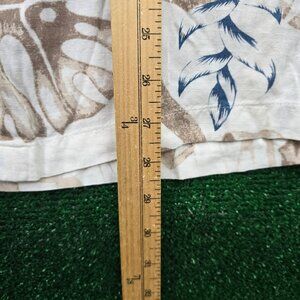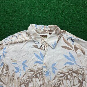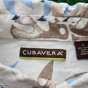 Cubavera Hawaiian Shirt Mens Large Beige Floral 100% Viscose Summer Beach Casual
