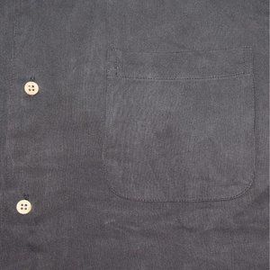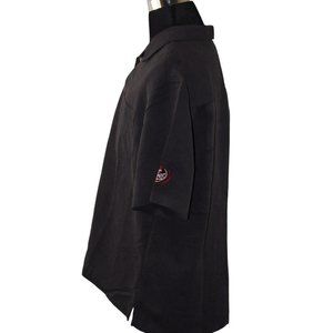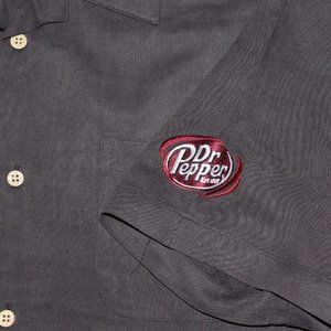 This Cubavera large black shirt features an embroidered Dr Pepper logo, perfect for casual wear or a bowling night. The solid pattern and short sleeves make it a stylish choice. Made from 70% rayon and 30% polyester.