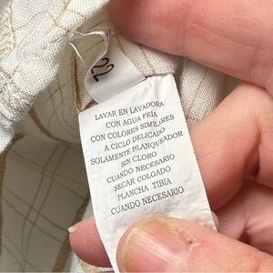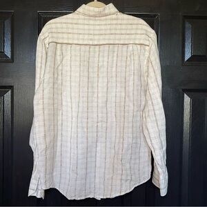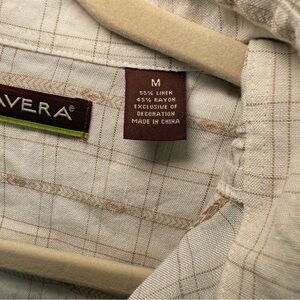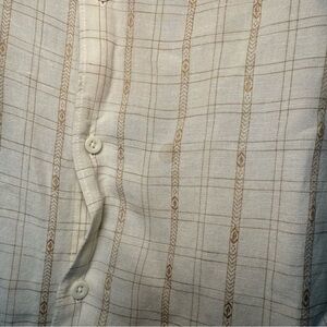 Cubavera Large Stone Beige+ Tan Aztec Plaid Khaki Trim Linen Rayon BD Shirt M