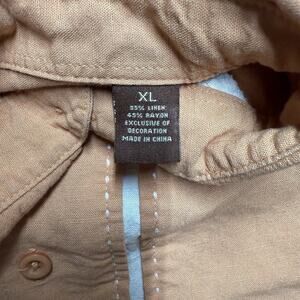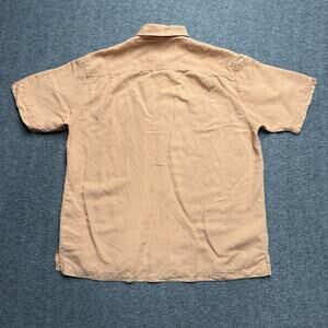 Cubavera Linen Blend Button Up Shirt Men's XL Orange Striped Embroidered Bowling