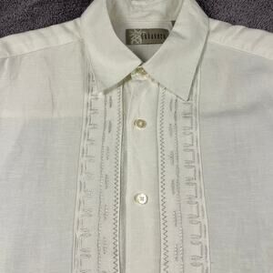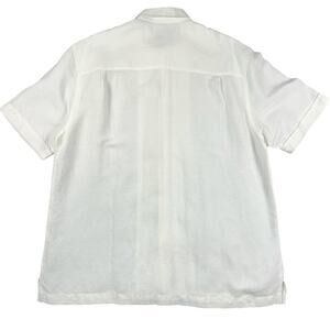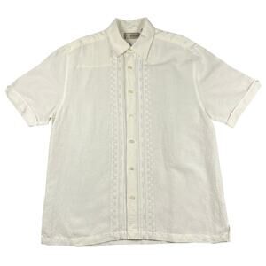 Cubavera Linen Blend Embroidered Short Sleeve Guayabera Shirt White Size L