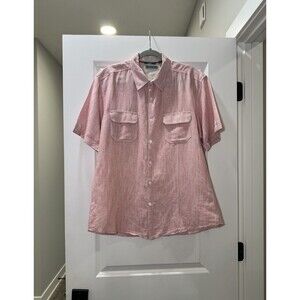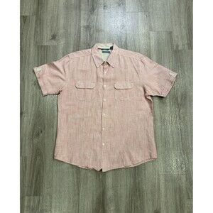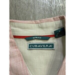 Cubavera Linen Blend Shirt Slim Fit Button Up Mens Size Large Red White Striped