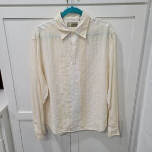 Cubavera Linen Collared V neck Tunic Top Size Large