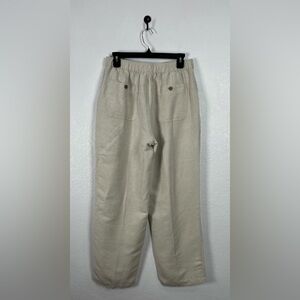 Cubavera Lounge Pants Womens Medium Tan Linen Blend Pockets Drawstring Wide Leg