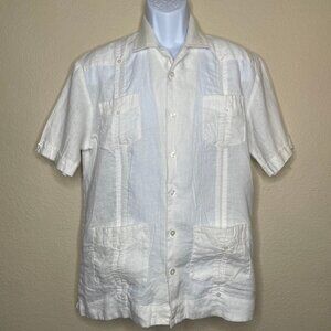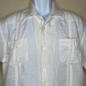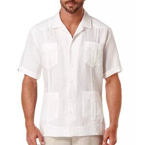 Cubavera Men's 100% Linen Cream Short-Sleeve 4-Pocket Guayabera Shirt Medium