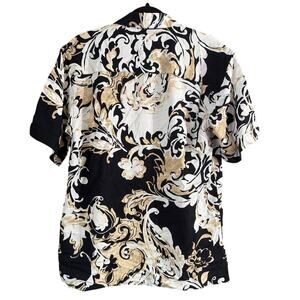Cubavera Men's Black Gold Tan Paisley Floral Button Down Hawaiian Shirt Size Small S New