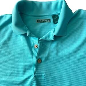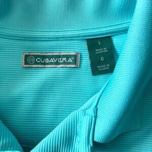 Cubavera Mens Shirt Size Large Solid Texture Polo Short Sleeve Blue Curacoa