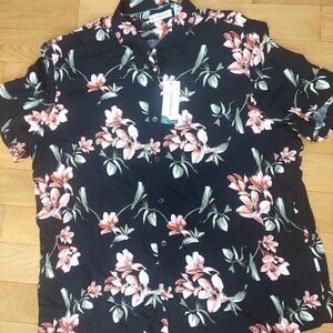 Shelf#9 Cubavera Men's Tropical Floral Short Sleeve Button-up Shirt Jet Black XXL New