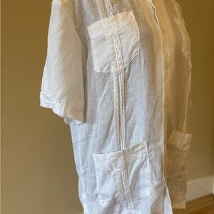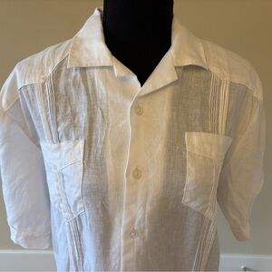 Cubavera Men's White Linen Guayabera Short Sleeve Shirt