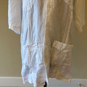 Linen shirt ideal for warm weather. Features four pockets and detailed vertical pleats.