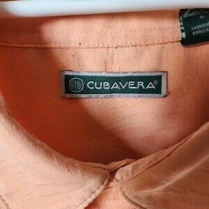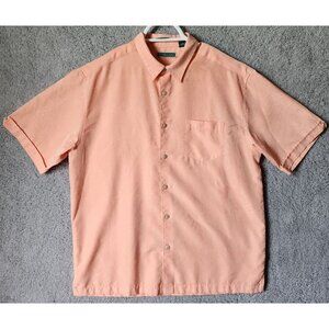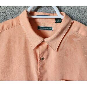 Cubavera Orange Palm Print Short Sleeve Button Shirt Size Large 100% Polyester