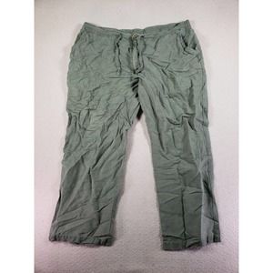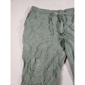 Cubavera Pants Womens 36 Green Straight Linen Mid Rise Slash Pockets Drawstring