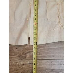 The creamy yellow color adds a subtle pop of color, perfect for both casual and semi-formal occasions. In excellent condition and ready to wear, this Cubavera shirt is a must-have for any fashion-forward man.