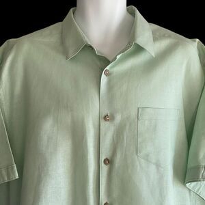 Cubavera Shirt Men's Extra Large Green Linen Short Sleeve Button Up