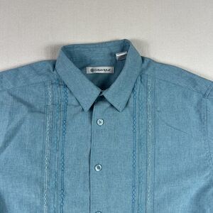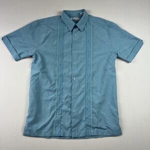 Cubavera Shirt Mens Small Blue Embroidered Guayabera Short Sleeve Button Up Summer