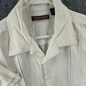 Cubavera Shirt Short Sleeve White Rayon Blend Large Camp Hawaii Button Up Men