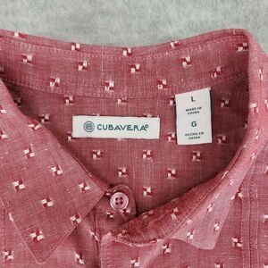 Cubavera Textured Linen Shirt Mens Large Red Aloha Casual Tropical Cotton Cuban