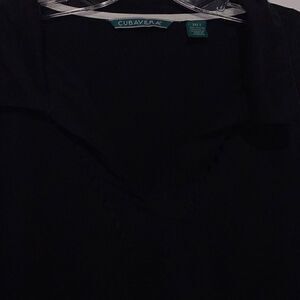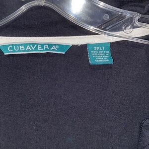 Cubavera Women's Oversized Elbow Sleeve Notch Neckline Collared Blue Top 3XLT