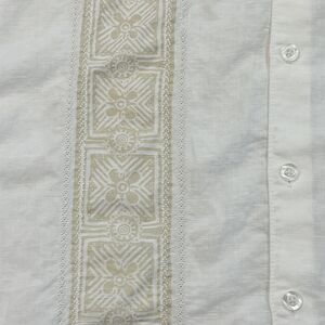 Fantastic beach / vacation / weekend ready shirt that is in fantastic condition. Very light weight comfortable linen blend. The slight contrasting pattern on the left with the embroidery / stitching steps the shirt up a notch. This is a perfect shirt for a relaxing day or night.