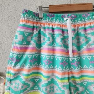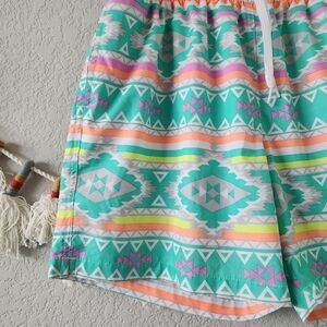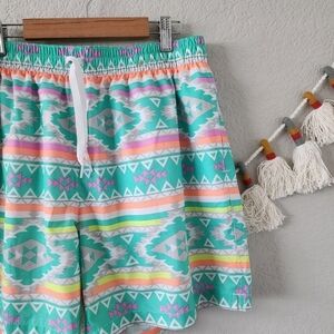 Cubbies The En Fuegos Teal Geometric Lined Swim Trucks Shorts Mens XL Beach